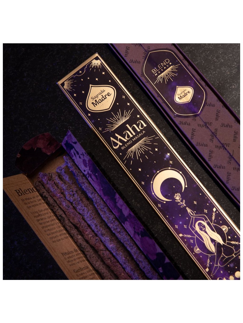 Vůně tyčinek Maha obsahuje energii slunce, měsíce a hvězd. Ve svém masalovém srdci skrývá jemnost třtinového medu a sladkost květin.